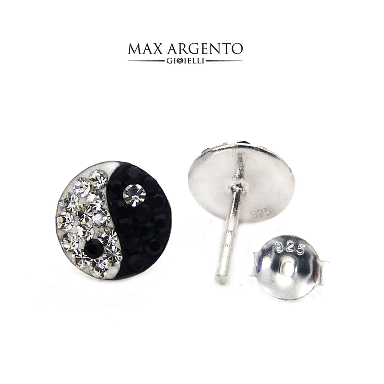 Orecchini in Argento 925‰ – Yin E Yang Con strass 8 x 8 mm- Rodiato