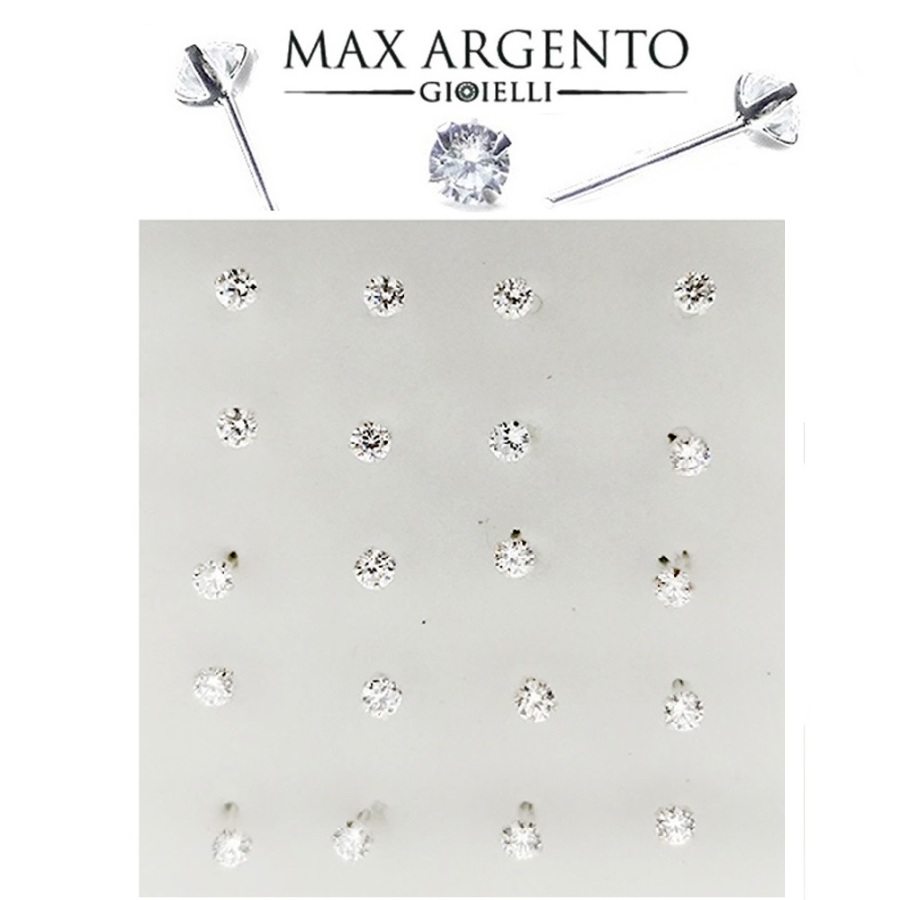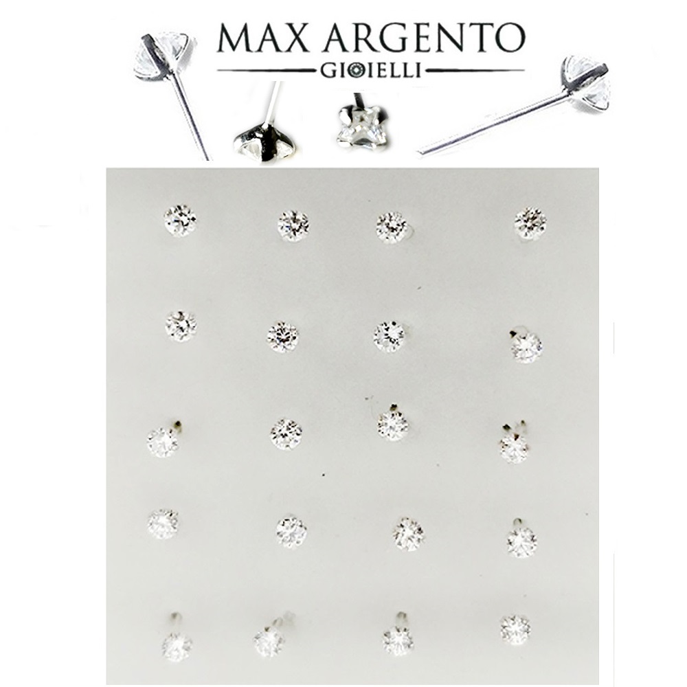 NASINO ARGENTO 925 CON ZIRCONE TONDO E QUADRATO 4 GRAFFETTE IN 5 MISURE :